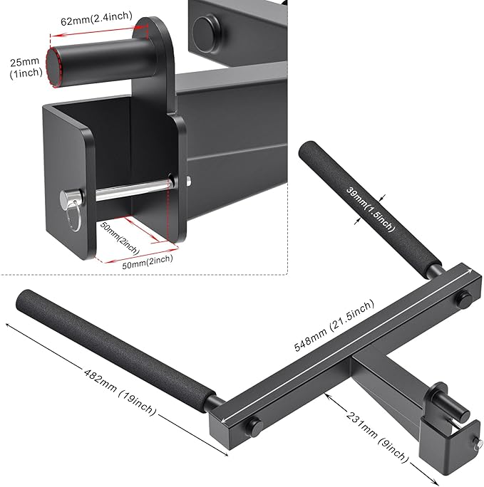 - 【Compatibility】The Y-Bar Dip Station Handles are compatible with 2"x2" steel tube power racks that have 1" holes. Please measure your power rack size before buying to ensure a proper fit.