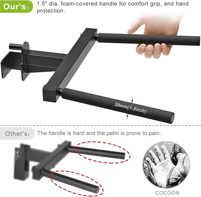 - 【Comfort and Grip】The Y Dip Bar have a foam cotton layer that wraps around the handles for a comfortable and non-slip grip. They protect your hands from calluses and blisters while you exercise.