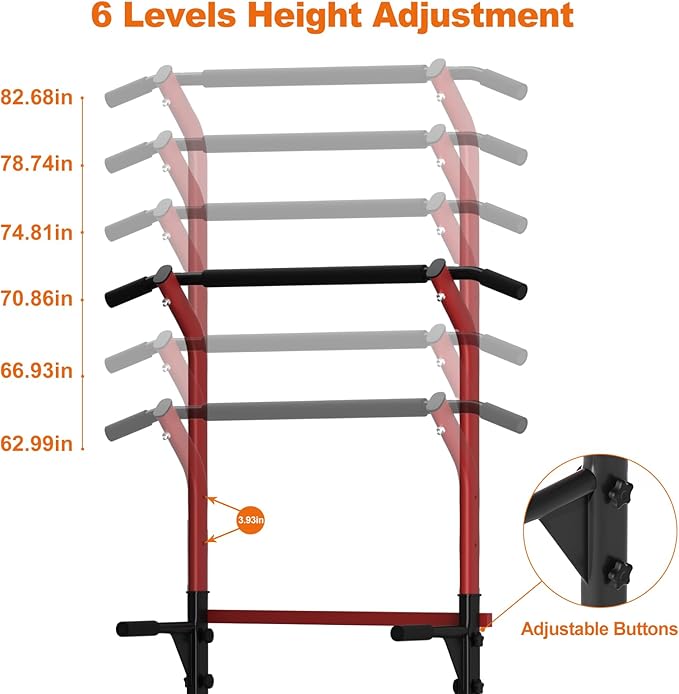 - Product Dimension: 36.6Lx31.5Wx63~82.7H(inches). Maximum weight capacity: 330LBS, The height of pull up bar can be adjusted from 63~82.7".