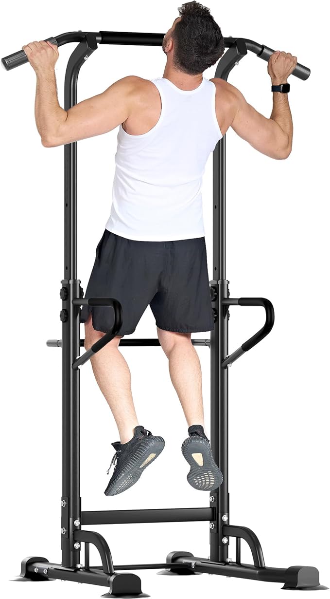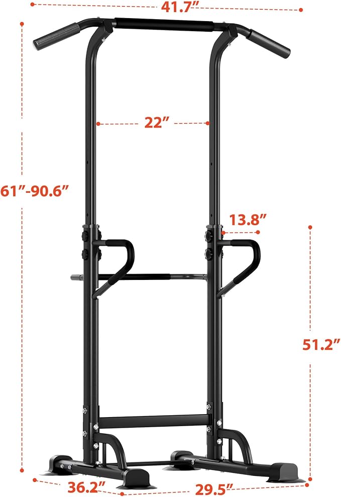 - Robust Construction: Crafted from heavy-duty metal, our Power Tower Dip Station boasts a durable and stable stand capable of supporting up to 600lbs. Its anti-skid base provides added security, even during intense workout sessions.