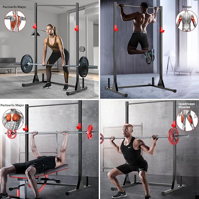 - ADJUSTABLE HEIGHT: The Power Tower Dip Station has empty spaces on the side with different heights. Easy to customize depeding on height or exercise types, making it suitable for the whole family to participate in the workout.